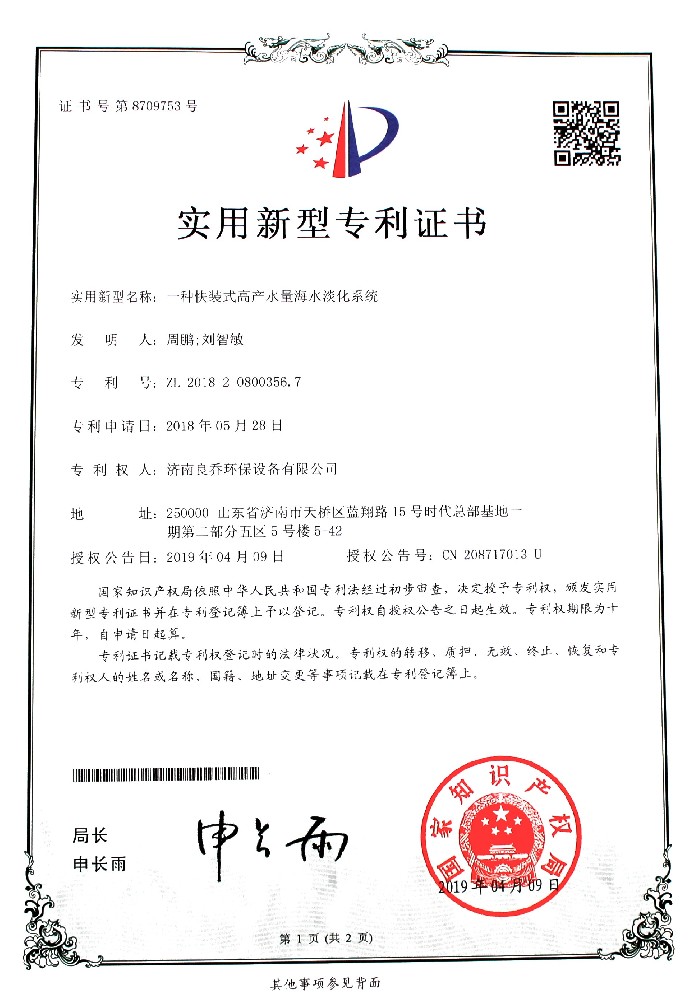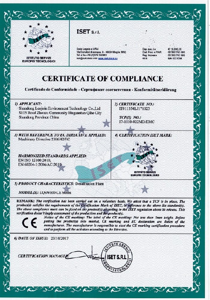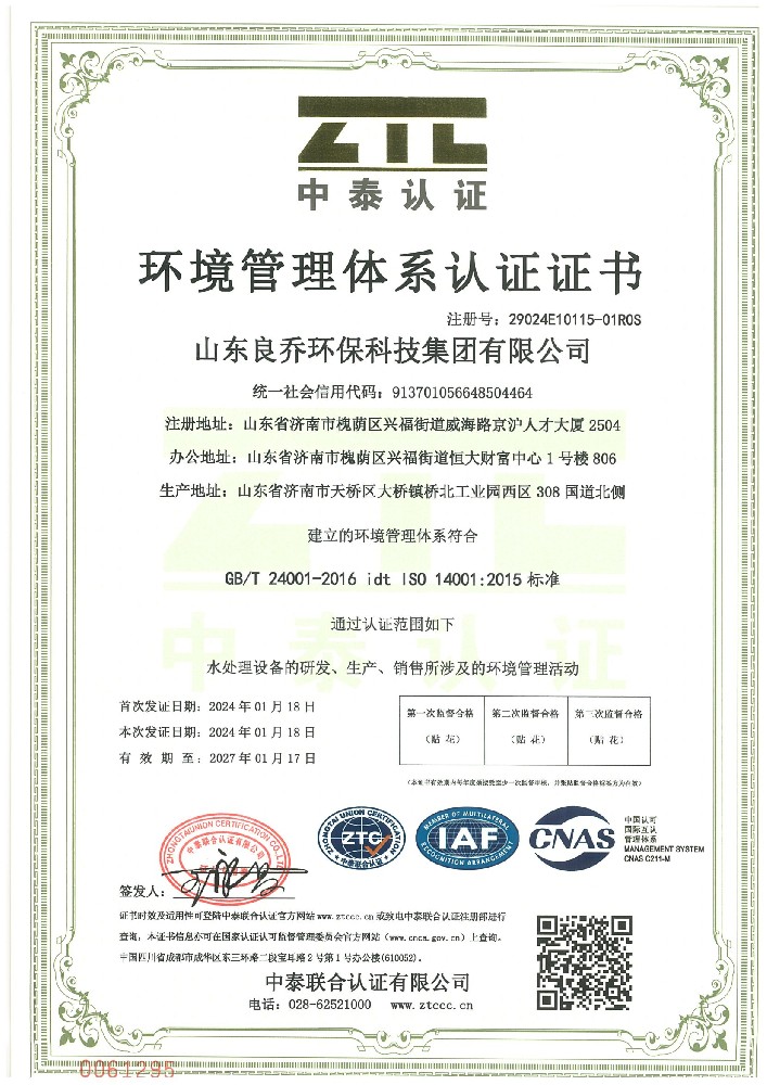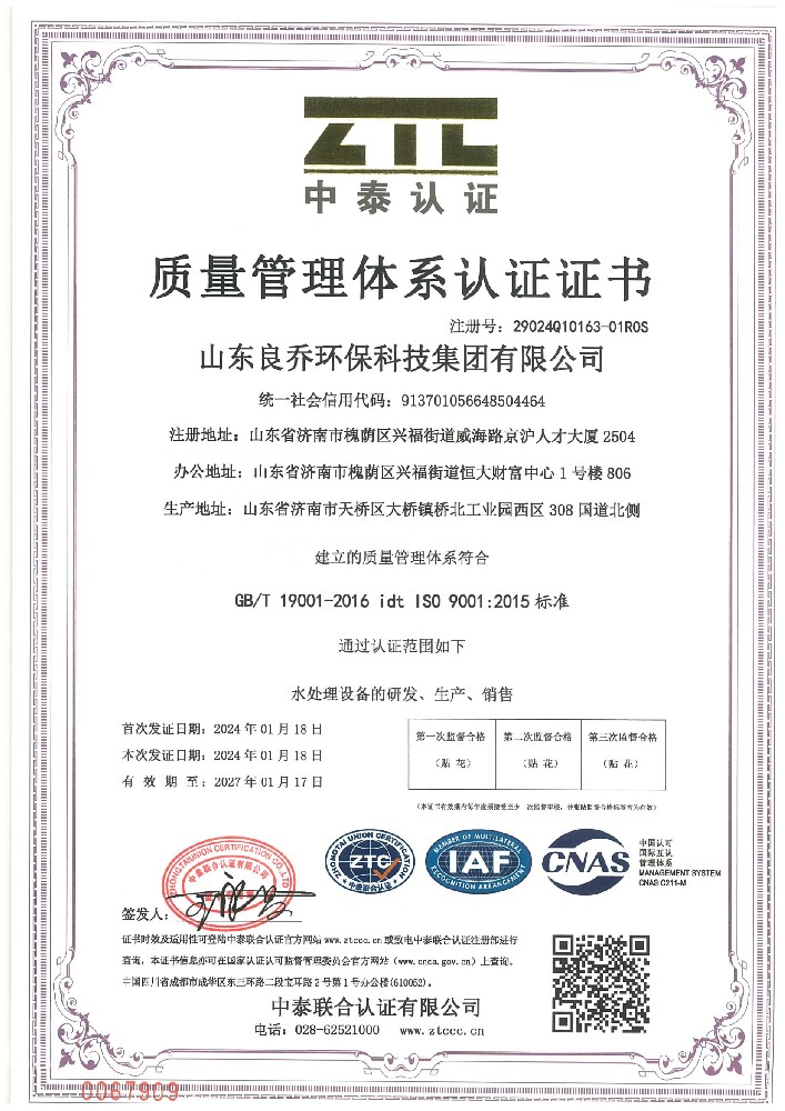 良乔集团产品已全面通过中华人民共和国国家卫生部涉水产品许可证和省卫生厅验收合格,全面通过IS09001-2015质量管理体系认证和、14000 环境管理体系认证。并取得欧盟的 CE认证; 连续 10 年被评为重合同守信任单位。
